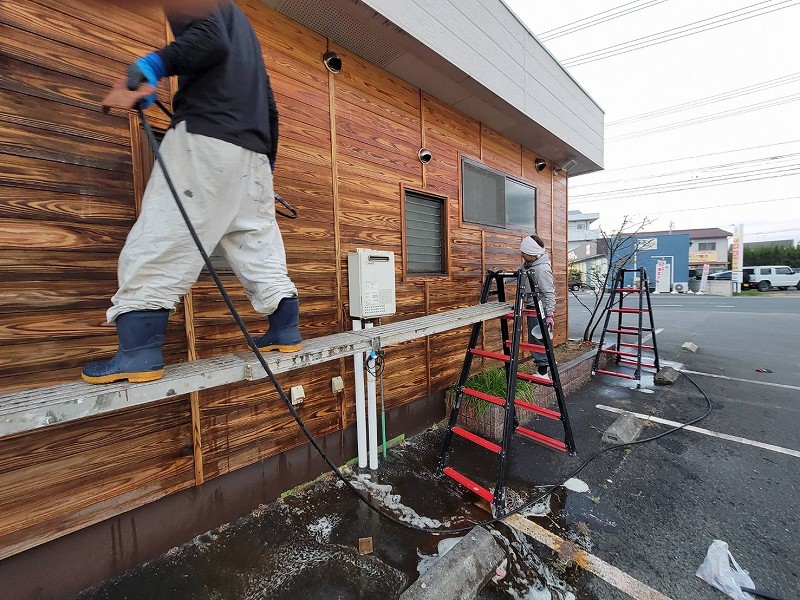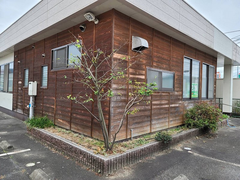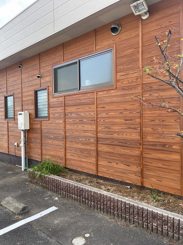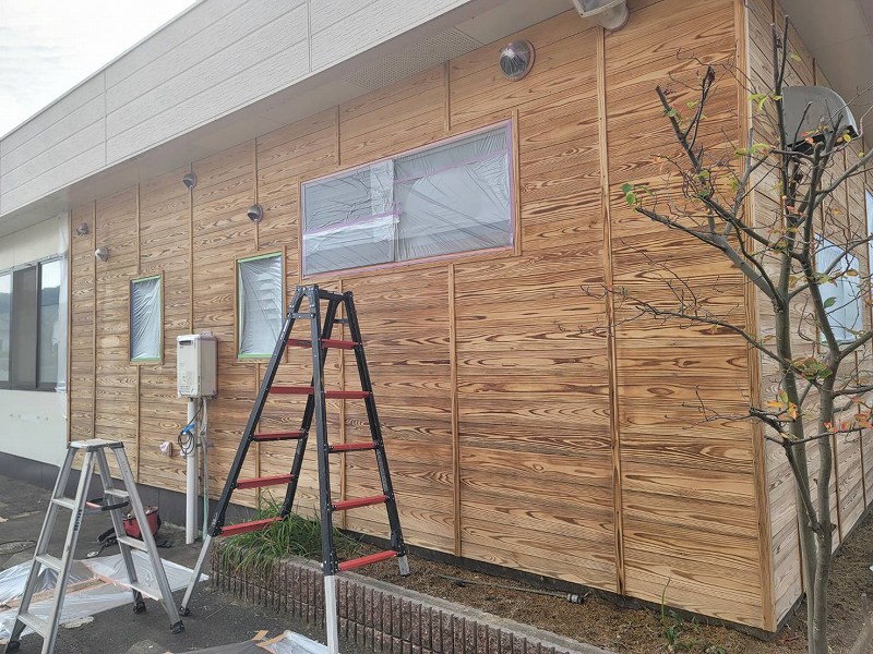今回は、福山市の店舗外壁の木塗り替え工事施工のご案内です(⌒∇⌒)