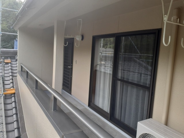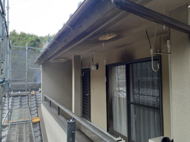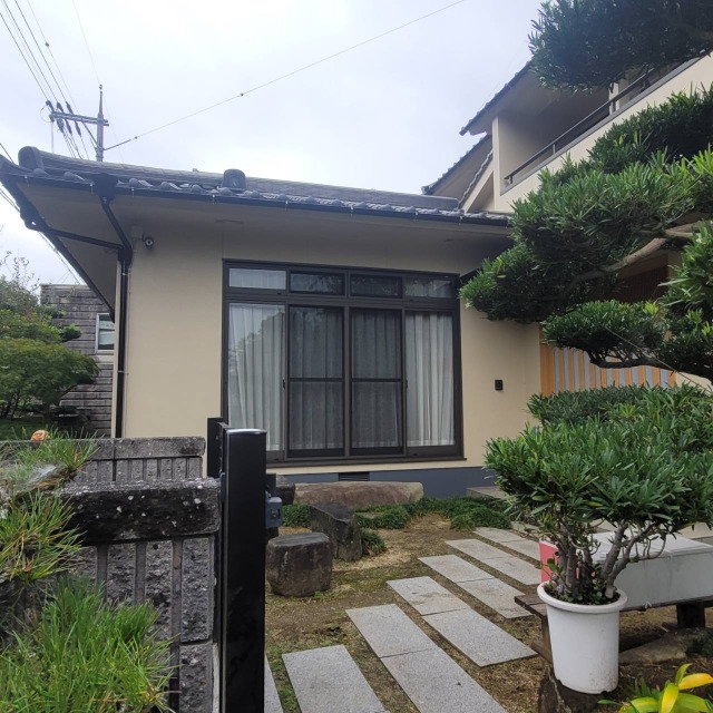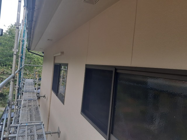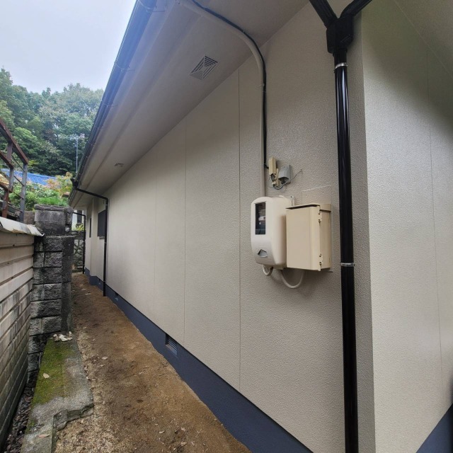 築25年程経つ木造住宅の塗り替えです。 外壁には、チョーキング現象・クラック現象・カビや苔も発生。 軒天には、多数の汚れが目立っている状態でした。 水洗い工事で汚れをしっかりと落とし、下地の調整を行いました。 上塗りは、ナチュラルな中にも上品さもあるお色で仕上げました。